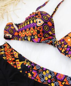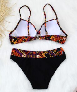 latest Two Piece Swimwear Women Purple Bikinis Printing Swimsuits Push Up Floral Summer Swimming Wear Sexy Bathing Suits