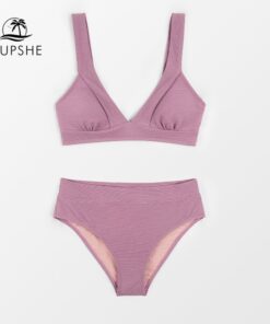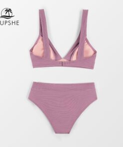CUPSHE Tall Triangle High Waist Bikini Set Swimsuit For Women Solid Pink Sexy Two Pieces Beachwear latest Bathing Suit Swimwear